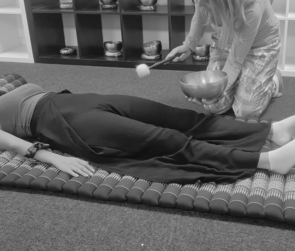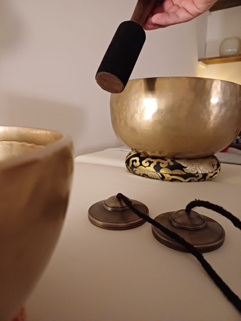 Le soin peut être réalisé soit dans le cadre d’un bain sonore, soit dans le cadre d’un massage vibratoire par apposition des bols sur le corps.