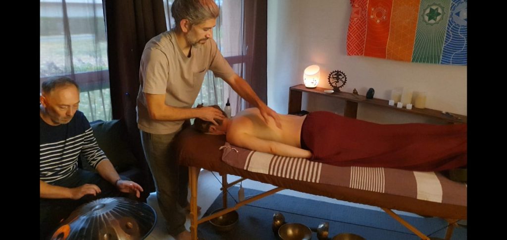 J’ai été formé par Christophe Gastaldi de L’Aixprit Népalais, un enseignement hérité d‘une pratique venant directement du Népal et respectueuse des us et coutumes locales. Les soins permettent d’amener de la relaxation, de libérer les tensions du corps, d’harmoniser les émotions, rétablir un équilibre énergétique général (harmoniser les chakras), mais également pour ceux qui sont ouverts à cette possibilité, développer la spiritualité, l’intuition, ou encore travailler sur les mémoires de l’âme pour rompre les schémas répétitifs.