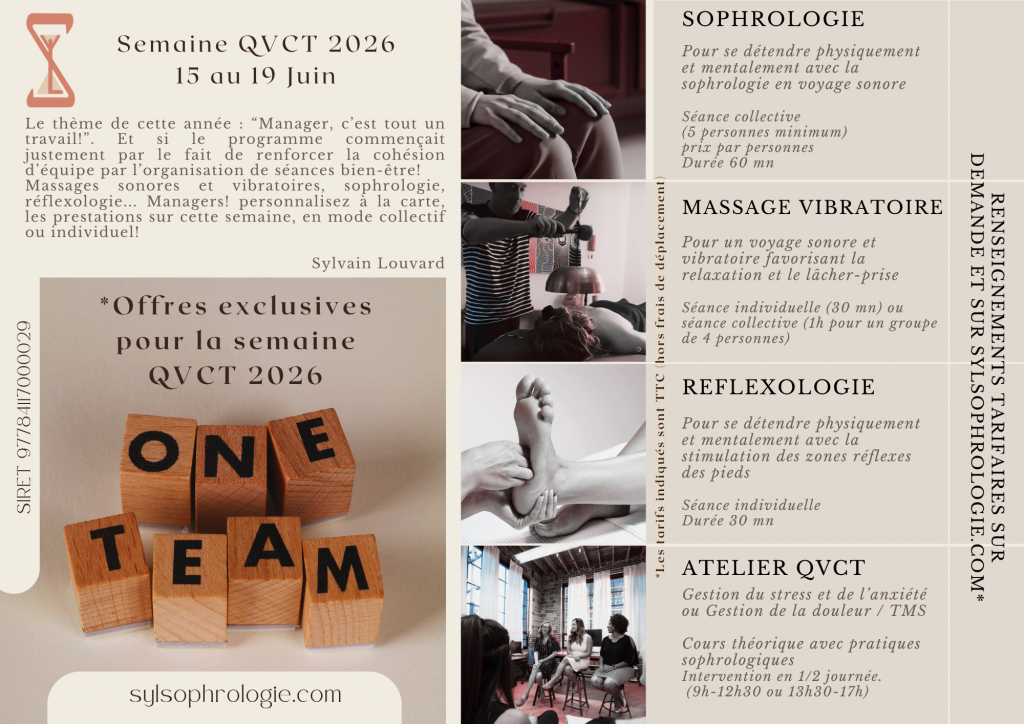 Je vous accompagne dans vos projets QVCT et plus particulièrement lors de cette semaine dédiée qui aura lieu cette année du 15 au 19 juin. Remplissez le formulaire de demande de devis personnalisé et dédié à votre semaine QVCT